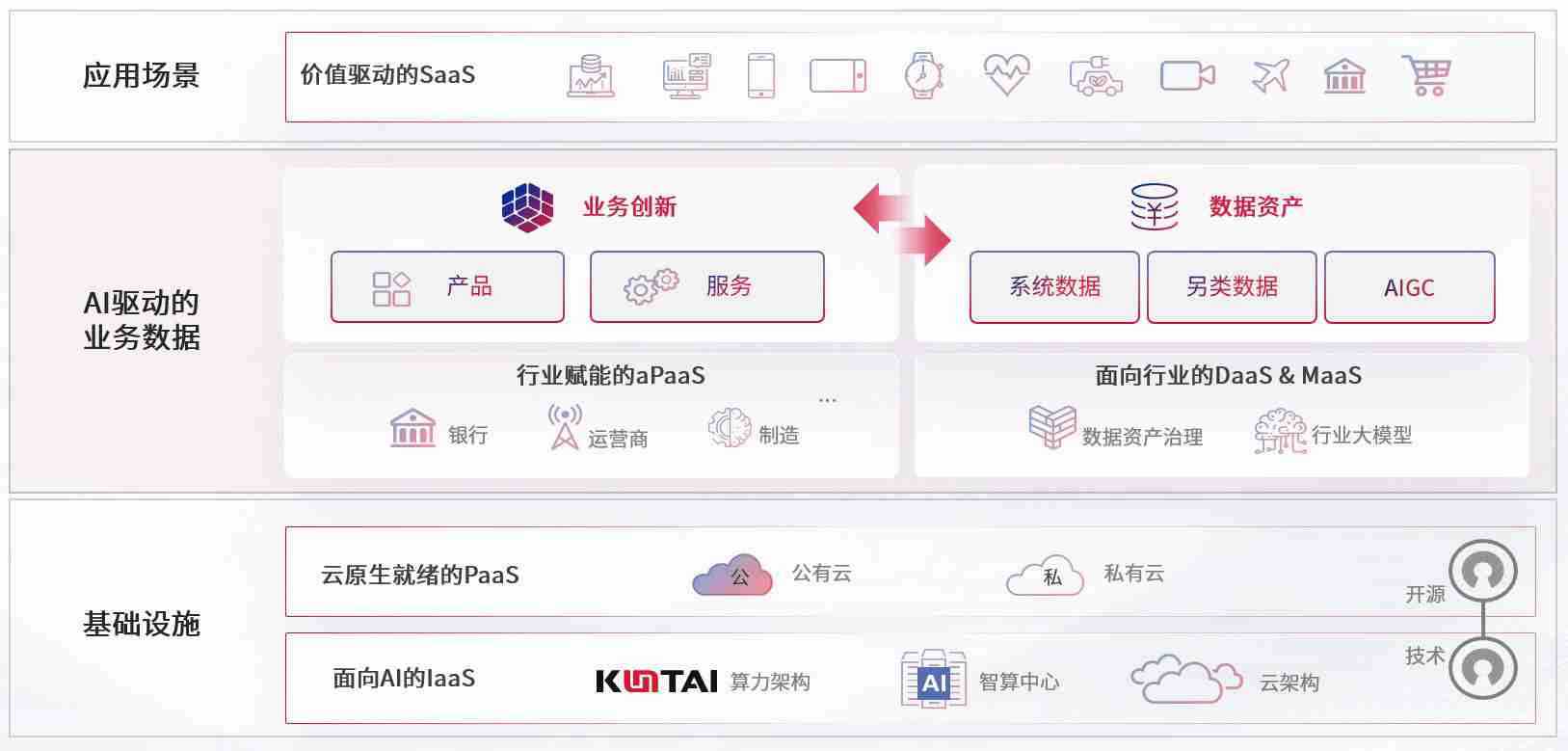 数字时代,,围绕企业数字化转型的关键要素,,,z6com尊龙数码开创性的提出数云融合战略和技术体系框架,,着力在云原生、、、、数字原生、、、AI原生和信创产业上架构产品和服务能力,,,为处在不同数字化转型阶段的快消零售、、、、汽车、、、、金融、、、、医疗、、政企、、教育、、运营商等行业客户提供泛在的敏捷IT能力和融合的数据驱动能力,,,,构建跨界融合创新的数字业务场景和新业务模式,,,,助力企业级客户建立面向未来的核心能力和竞争优势,,,全面推动社会的数字化、、智能化转型升级。。。