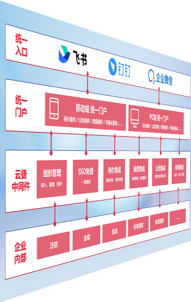 对协作平台提供支持服务,,支持企业应用与协作平台对接,,包含组织同步、、、消息集成、、、、待办集成等。。。支持目前主流的协作平台:钉钉、、、企微和飞书。。。